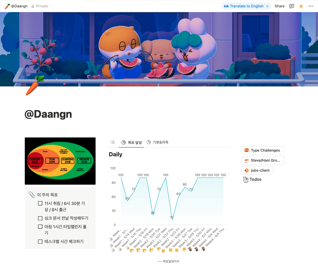 1주차에 매일 회고를 하며, 멘탈과 의욕 관리가 중요할 것이라고 예상했다.