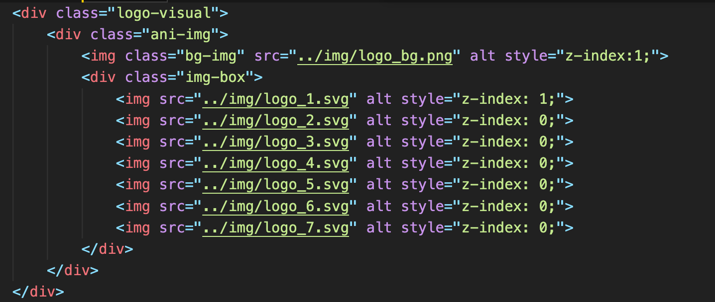 이 개발자님은 보이는 이미지를 바꾸는 것을 z-index로 구현하셨다. 마우스를 갖다대면, z-index값이 바뀌는 방법이다.
