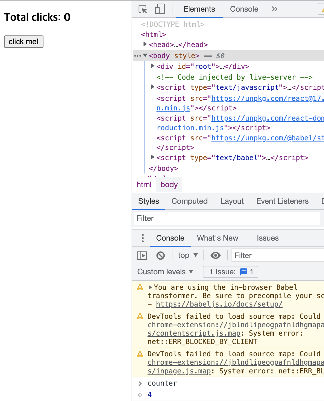 <h3>Total clicks: {counter}</h3>
