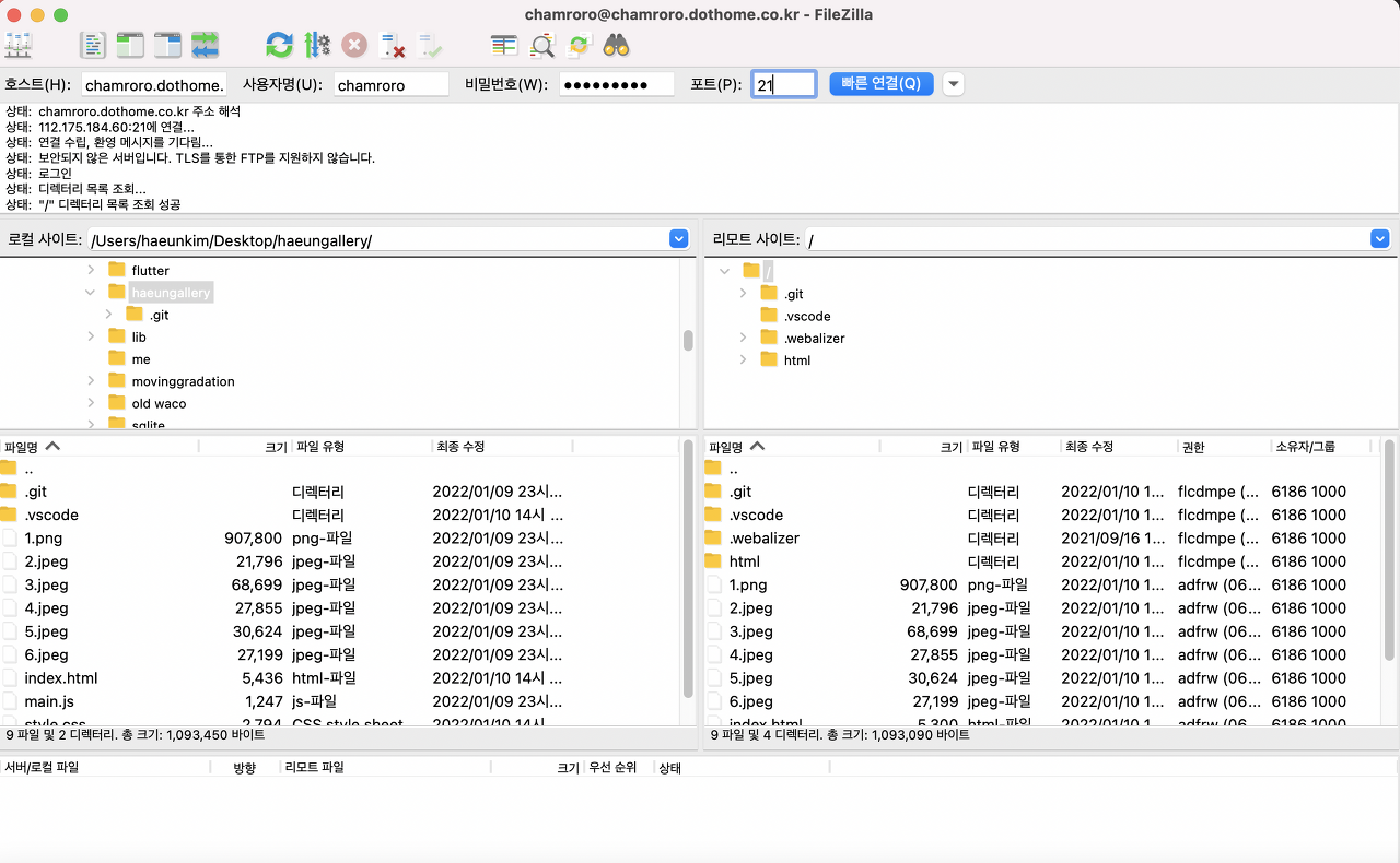 호스팅 신청 시 입력하였던 FTP 아이디와 비밀번호를 입력합니다