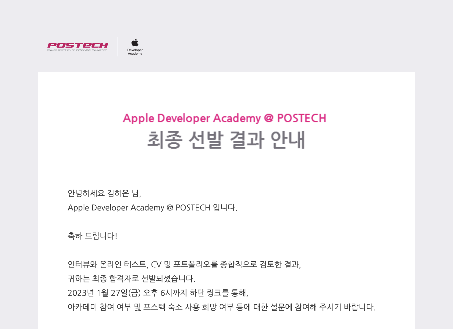 KIMHAEUN.COM Apple Developer Academy Apple Developer Academy 2기 테크 부문 최종 선발이 되었다 Apple Developer Academy 2기 테크 부문 최종 선발이 되었다 공유하기 게시글 관리 KIMHAEUN.COM 댓글