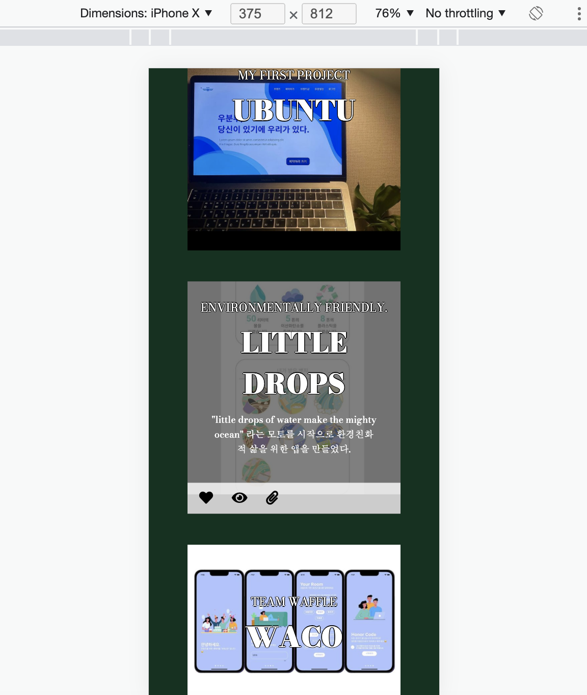 1080을 기준으로 더 클 땐 grid가 3개씩 나뉘지만, 작을 땐 1줄로 바뀝니다.
