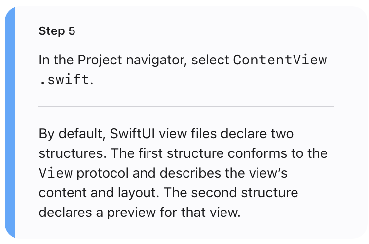 - ๊ธฐ๋ณธ์ ์ผ๋ก SwiftUI view ํ์ผ์ ๋ ๊ฐ์ ๊ตฌ์กฐ๋ฅผ ์ ์ธ