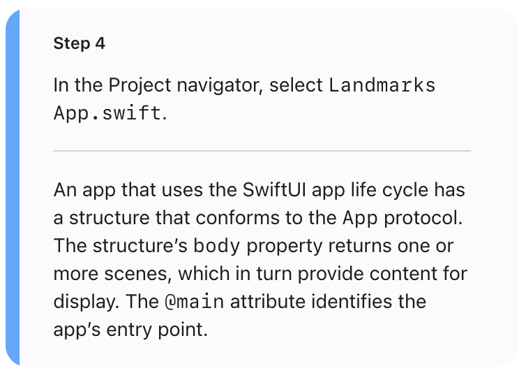 This tutorial guides you through building Landmarks — an app for discovering and sharing the places you love. You’ll start by building the view that shows a landmark’s details.