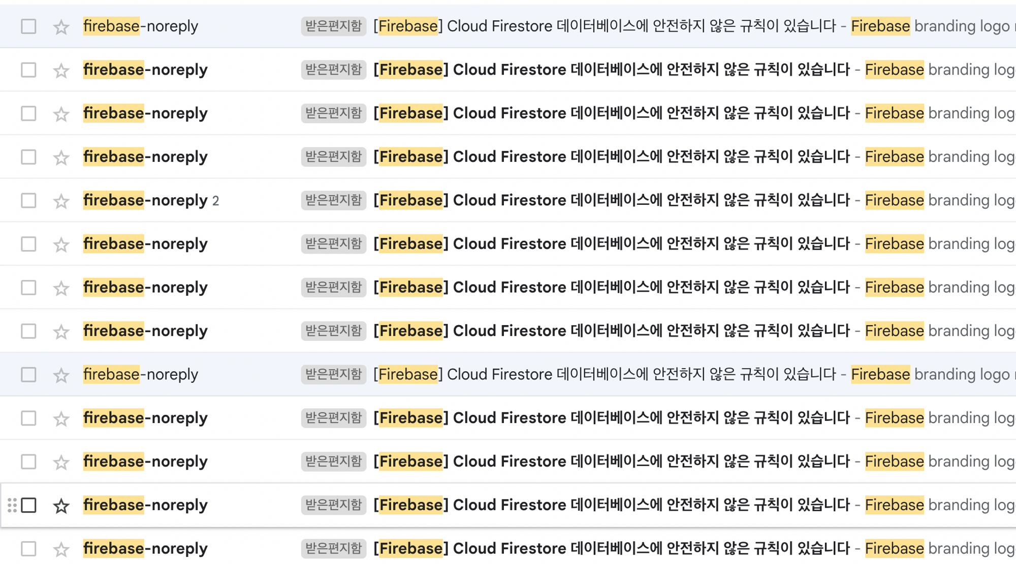 징글징글하게 이메일을 보내오던 firebase 보안규칙을 수정했습니다