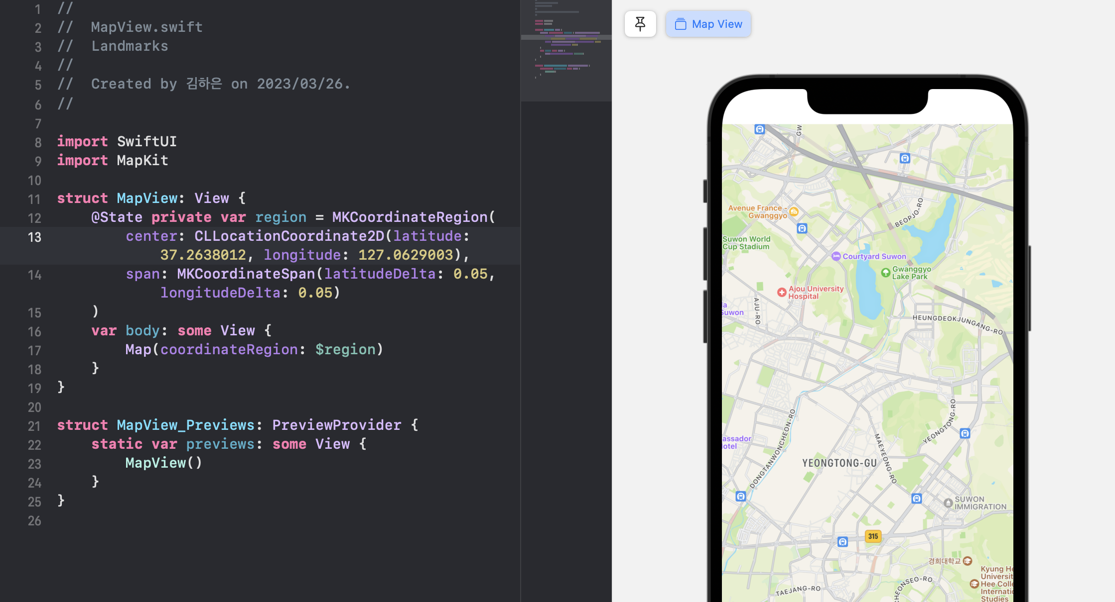 - ๊ธฐ๋ณธ์ ์ผ๋ก SwiftUI view ํ์ผ์ ๋ ๊ฐ์ ๊ตฌ์กฐ๋ฅผ ์ ์ธ